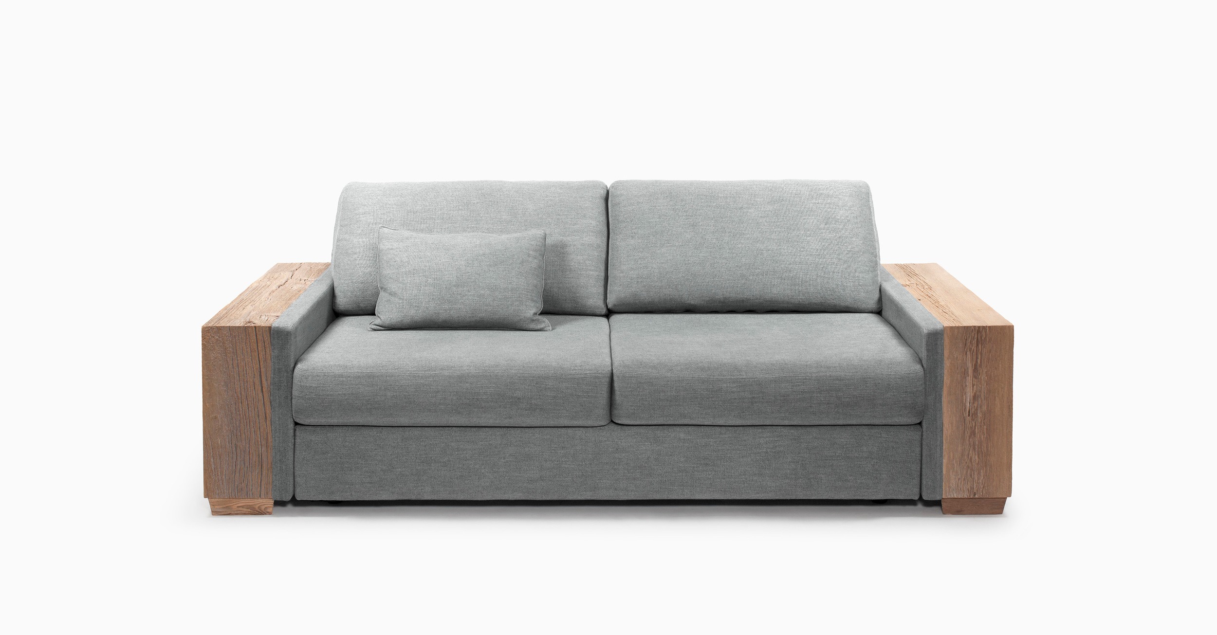 Canapé modulable en bois ancien Structure sanglée, assise en bultex Coussins de dos garnis de fibres Coussin déhoussables