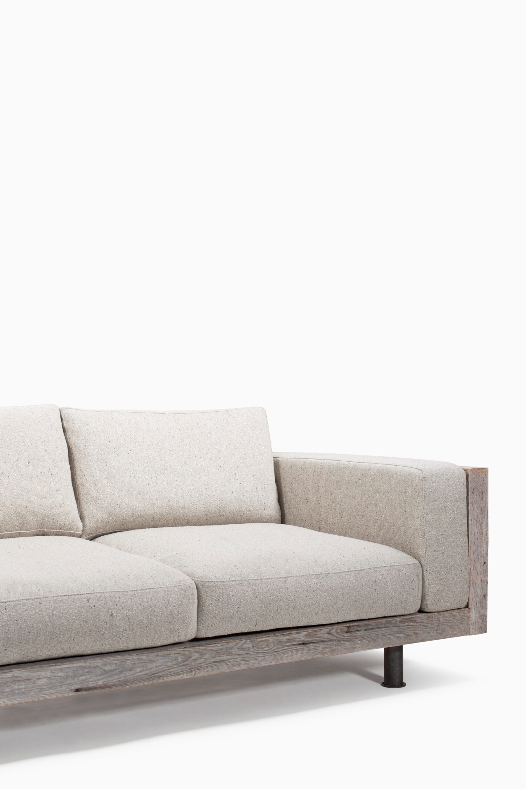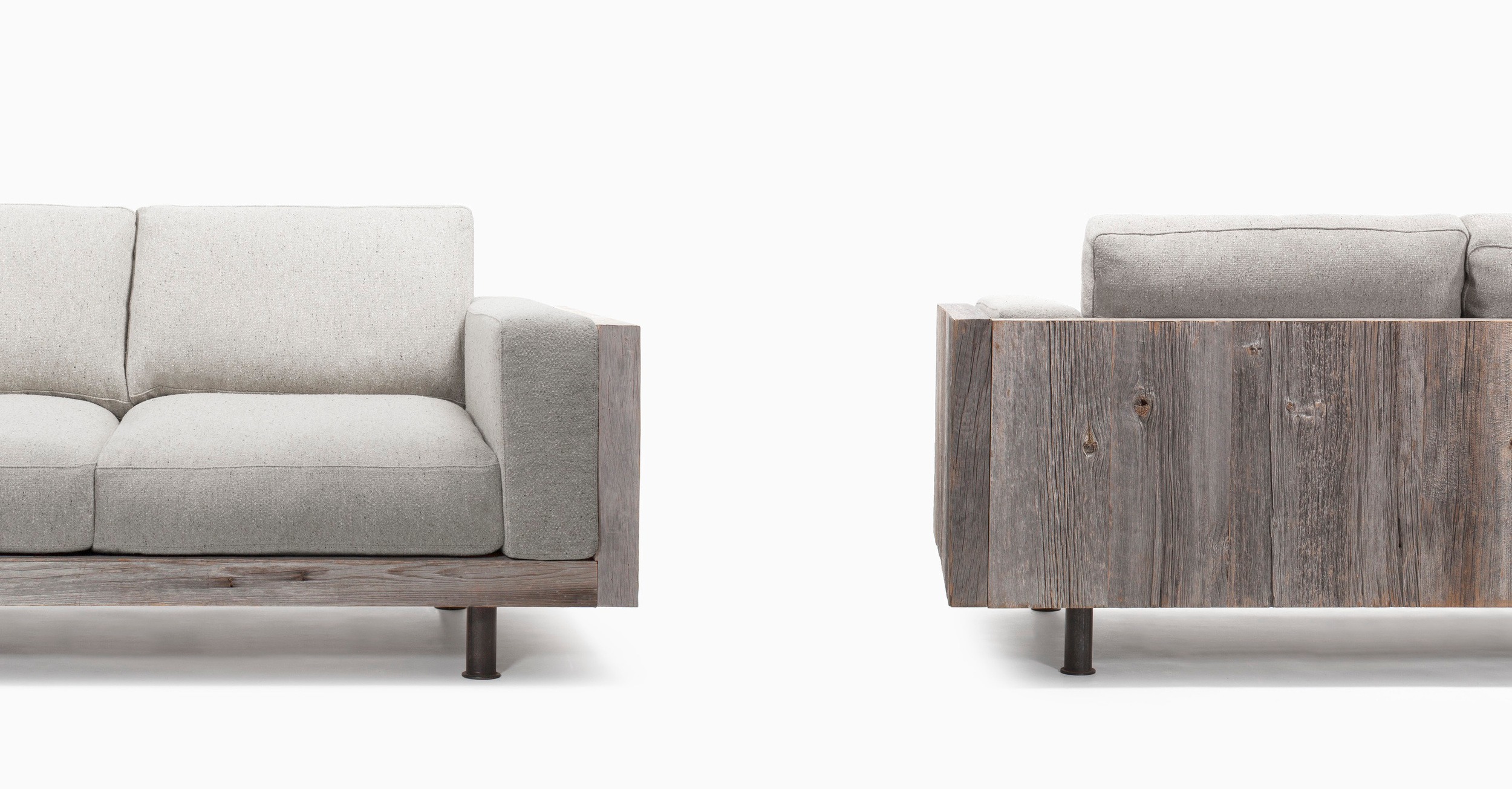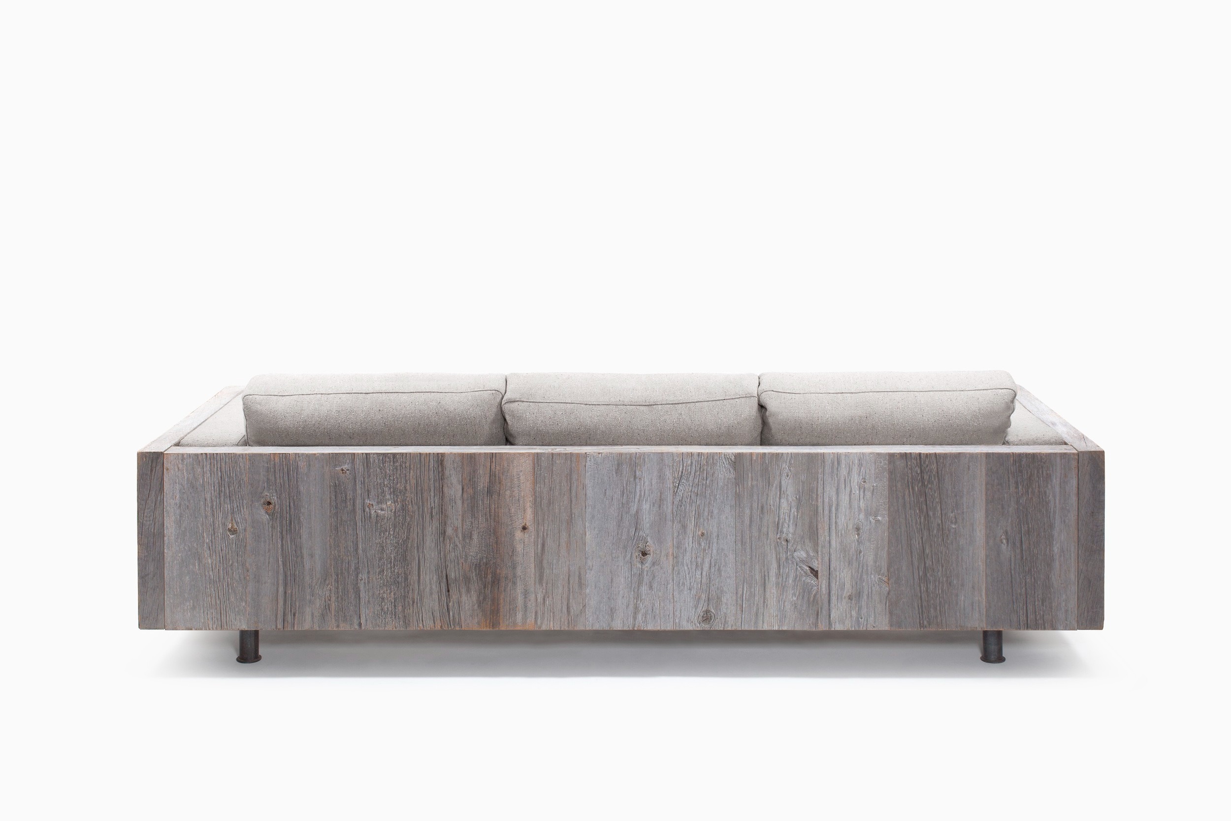 Le canapé bois KAWATA est un canapé modulable en bois ancien. Structure sanglée, assise en bultex Coussins de dos garnis de fibres Coussin déhoussables