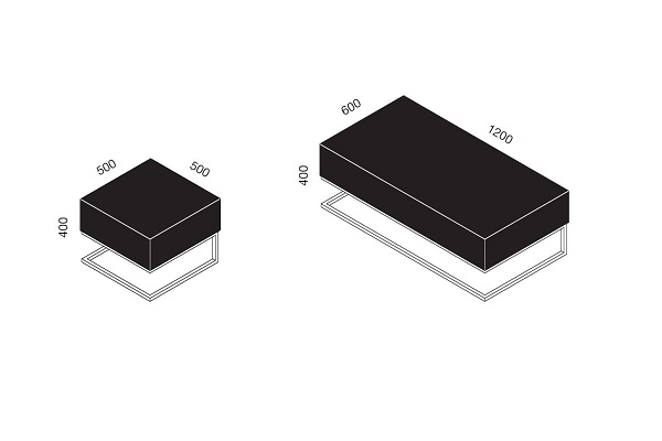 120 X 60 X 40 m ou 500 X 500 X 400 ou 1200 X 600 X 400